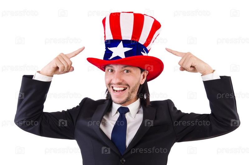 Человек с американским флагом, изолированный на белом