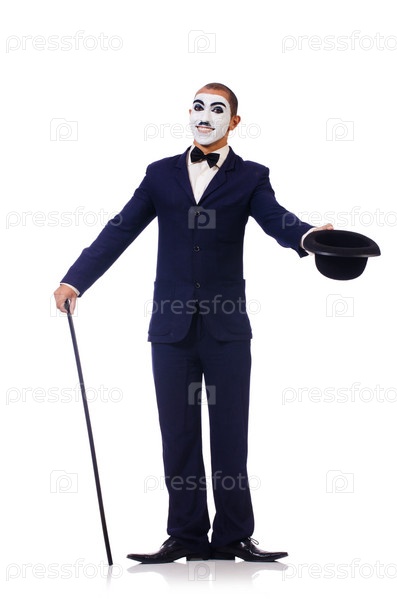 Двойник Чарли Чаплина на белом фоне