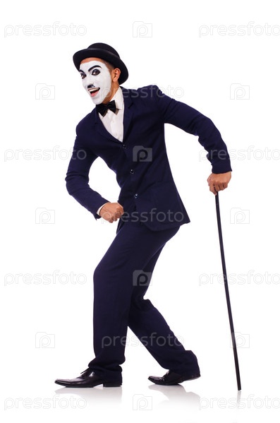Двойник Чарли Чаплина на белом фоне