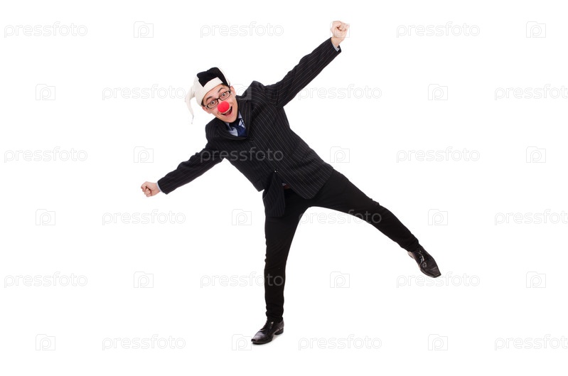 Клоун-бизнесмен, изолированный на белом