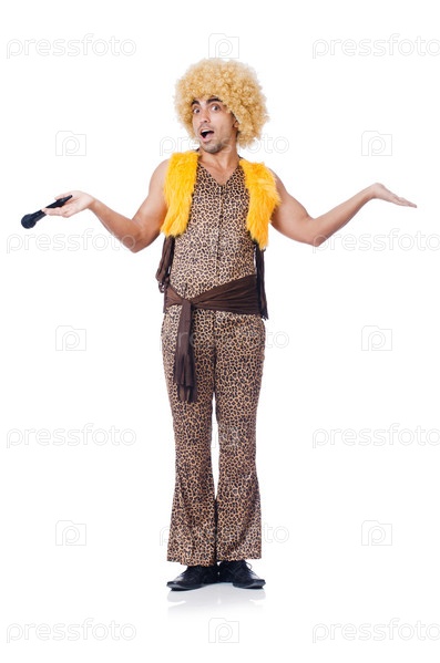 Человек с микрофоном и афро, изолированный на белом