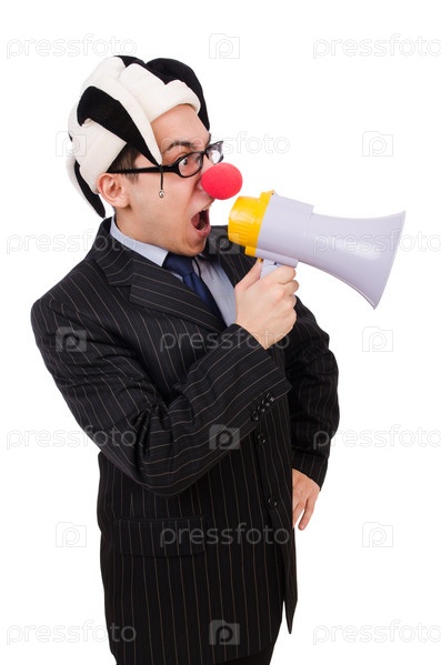 Клоун-бизнесмен, изолированный на белом