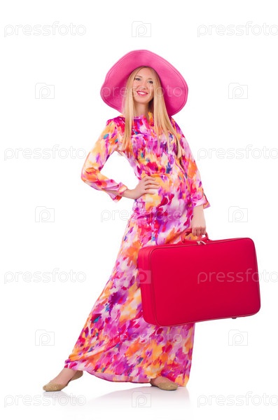 Женщина собирается на летние каникулы, изолированная на белом фоне