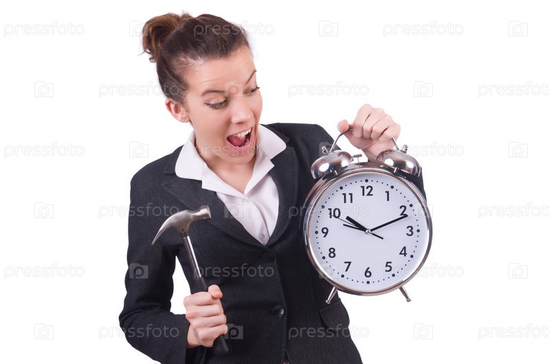 Женщина пытается сломать часы