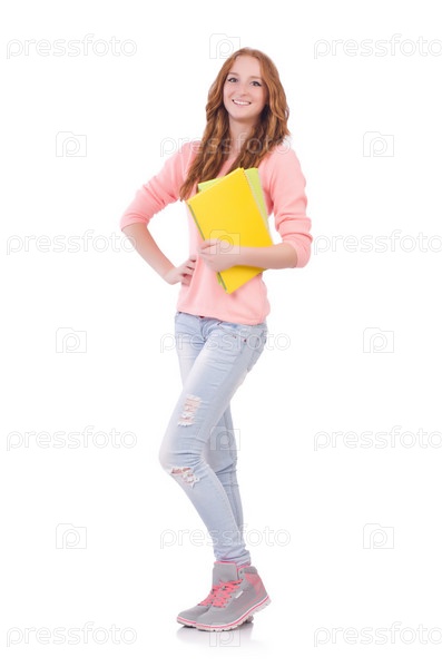 Молодая студентка, изолированная на белом фоне