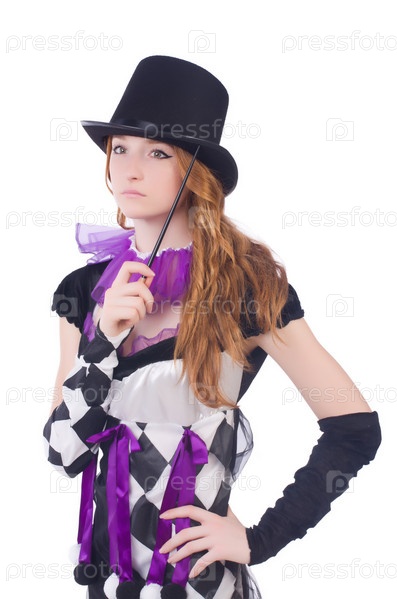 Иллюзионистка на белом фоне