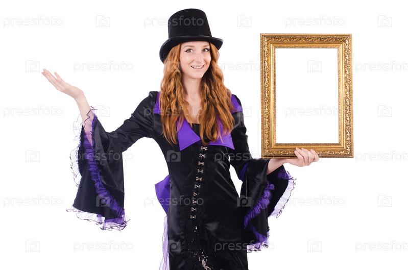 Женщина с рамкой на белом фоне