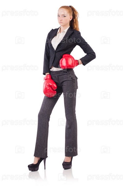 Женщина в боксерских перчатках, изолированная на белом