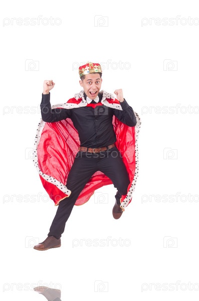 Бизнесмен с короной, изолированный на белом