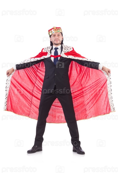 Бизнесмен с короной, изолированный на белом