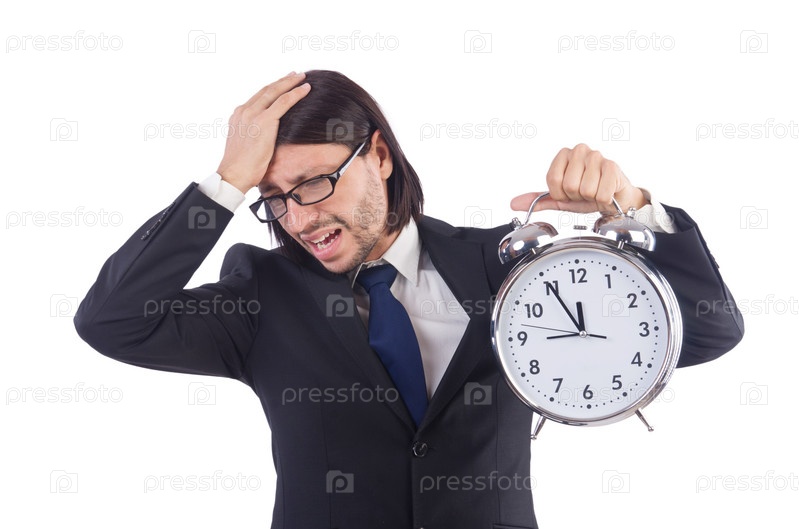 Бизнесмен с часами, изолированный на белом
