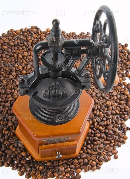 Старая кофемолка и кофе