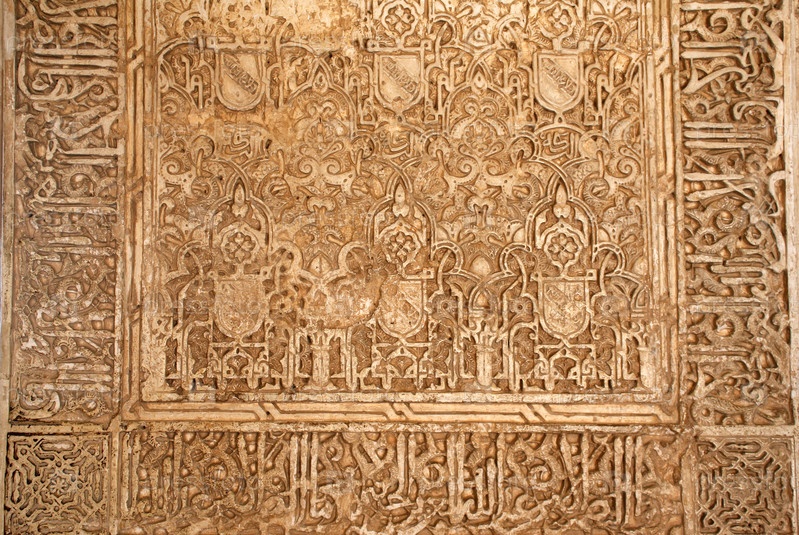 Античный, резной орнамент в Альгамбре, Испания