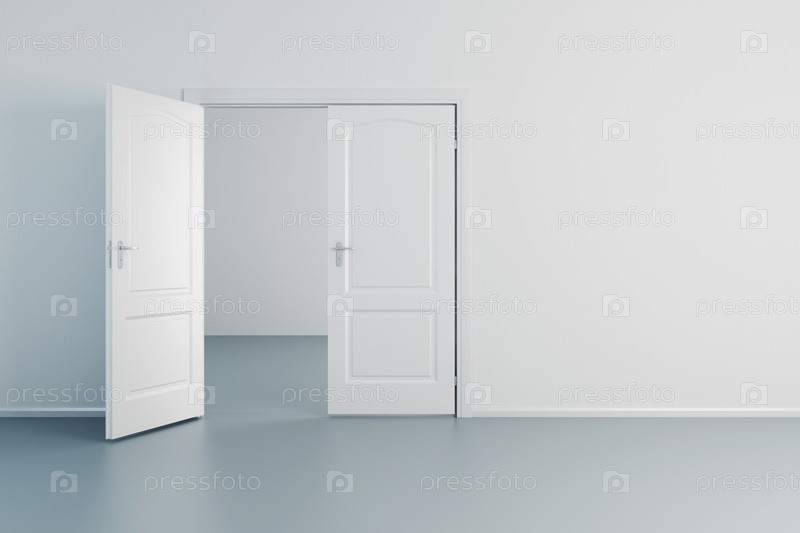 Пустая белая комната с открытой дверью