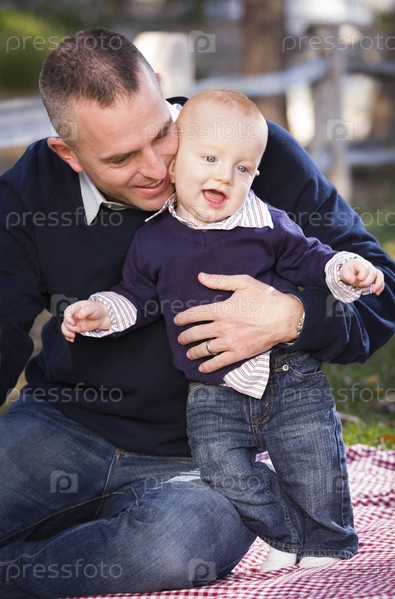 Младенца мальчика с отцом в парке