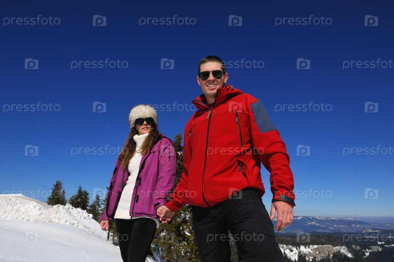 Молодая пара на зимних каникулах