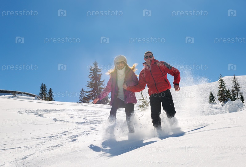 Молодая пара на зимних каникулах