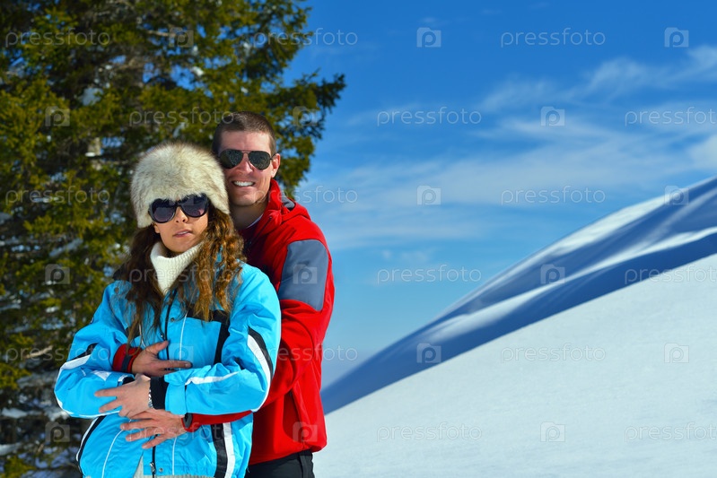 Молодая пара на зимних каникулах