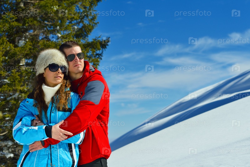 Молодая пара на зимних каникулах