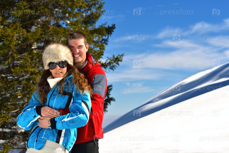Молодая пара на зимних каникулах