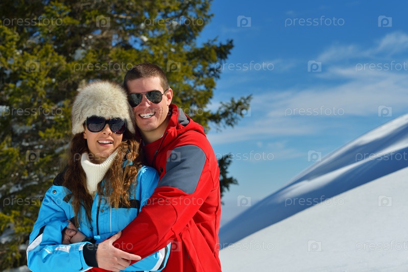 Молодая пара на зимних каникулах
