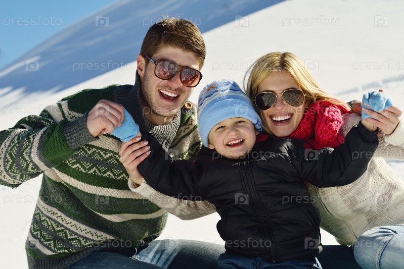 Семья отдыхает на зимних каникулах