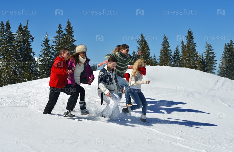 Друзья играют на свежем снегу