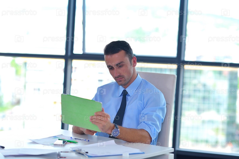 Деловой человек использует планшетный компьютер в офисе