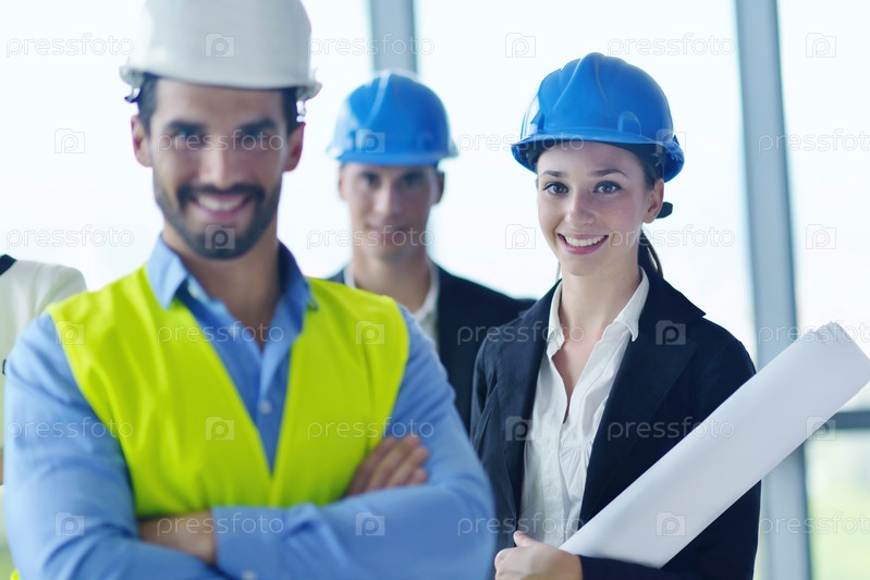 Деловые люди и инженеры на совещании