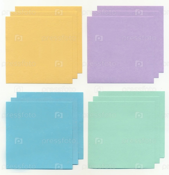 Четыре вида цветной бумаги для записи изолированы на белом фоне