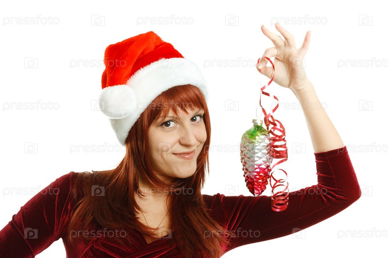 Красивая девушка с елочной игрушкой