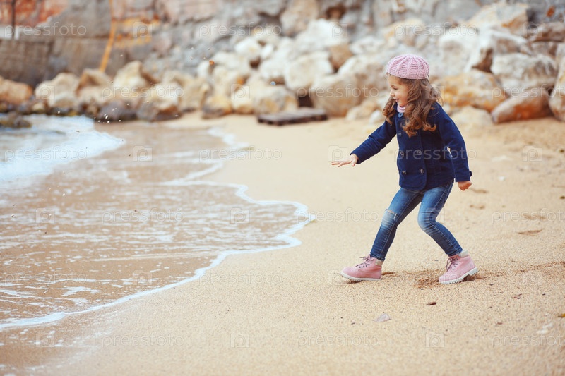Ребенок гуляет возле моря