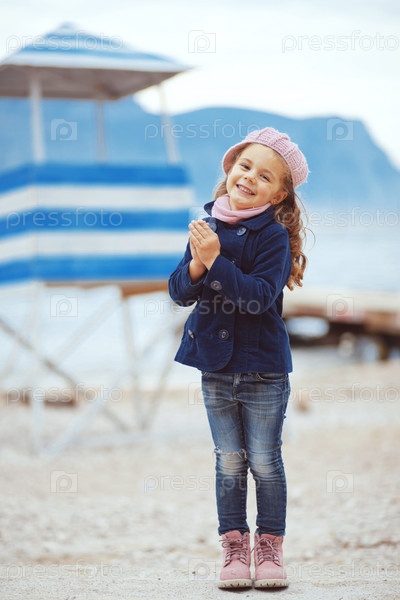 Ребенок гуляет возле моря