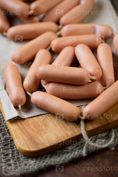 Молочные сосиски на разделочной доске