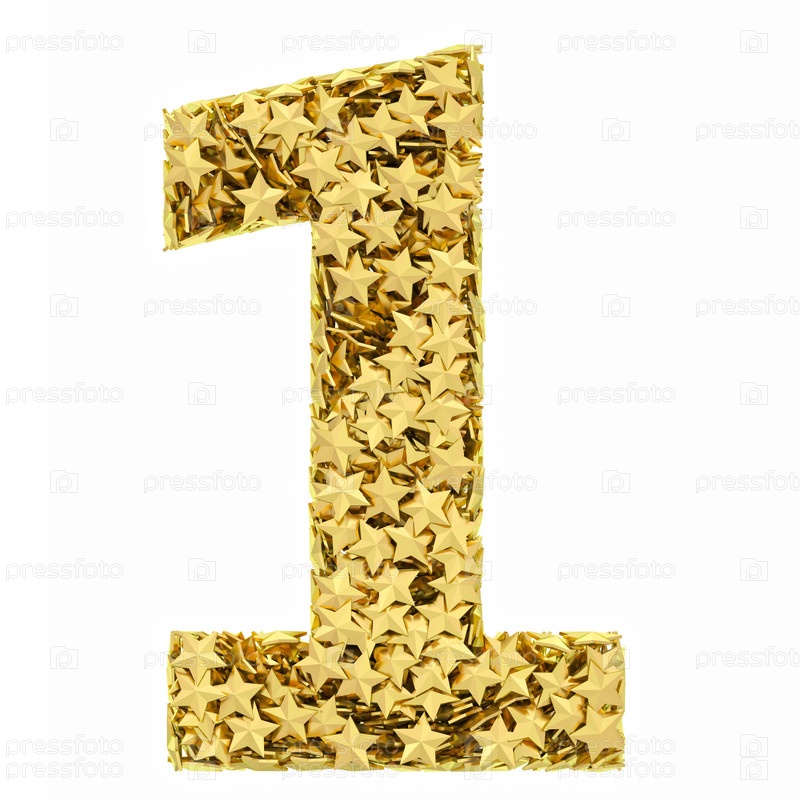 Цифра 1 из золотых звезд. 3D-изображение высокого разрешения