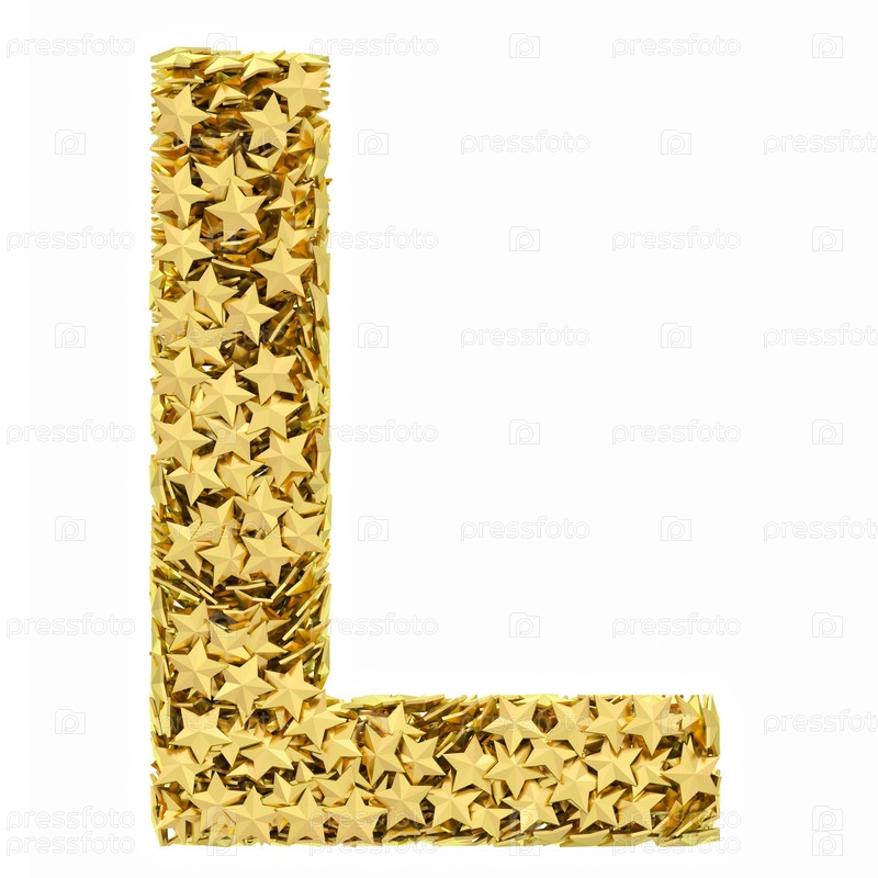 Буква L из золотых звезд, изолированная на белом. 3D-изображение высокого разрешения