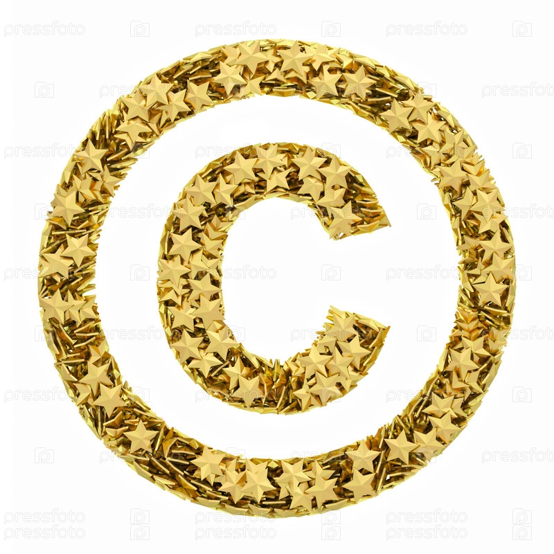 Знак авторского права из золотых звезд, изолированный на белом. 3D-изображение высокого разрешения