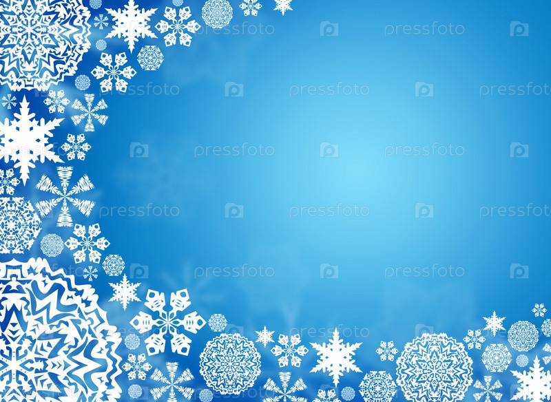 Белые снежинки на синем фоне