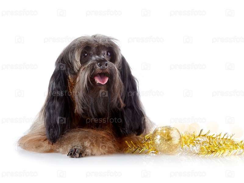 Декоративная собачка с новогодней игрушкой
