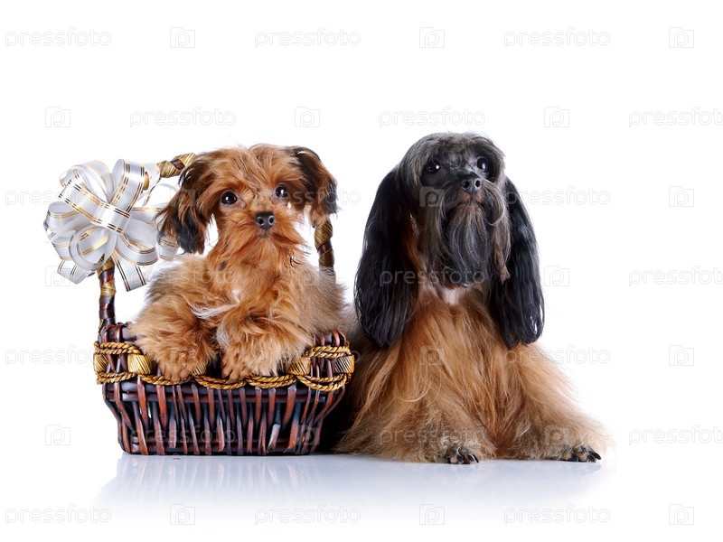 Декоративные собаки и корзина с бантом