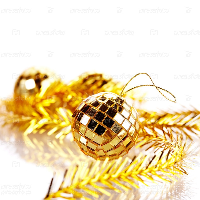 Золотой зеркальный шар и мишура