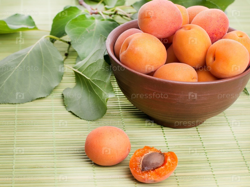 Абрикосы с зелеными листьями