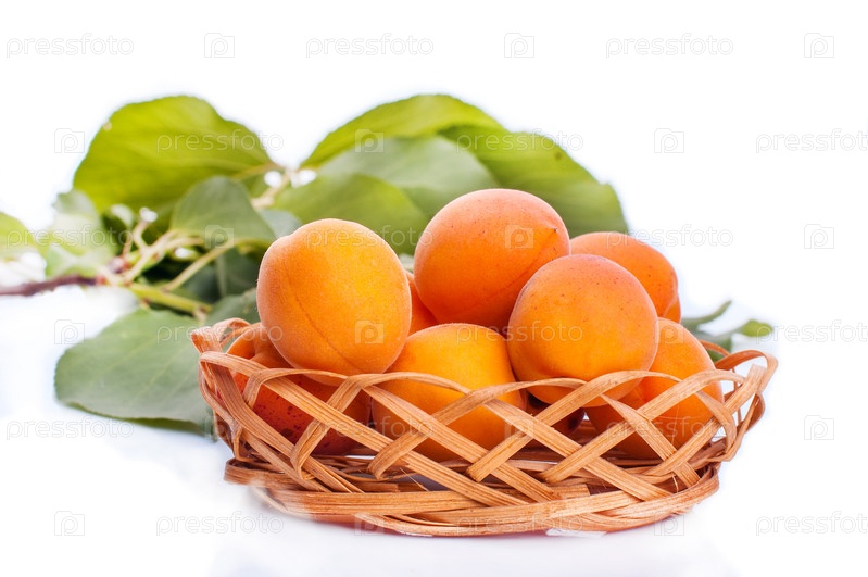 Абрикосы с зелеными листьями, изолированные