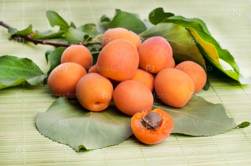 Абрикосы с зелеными листьями