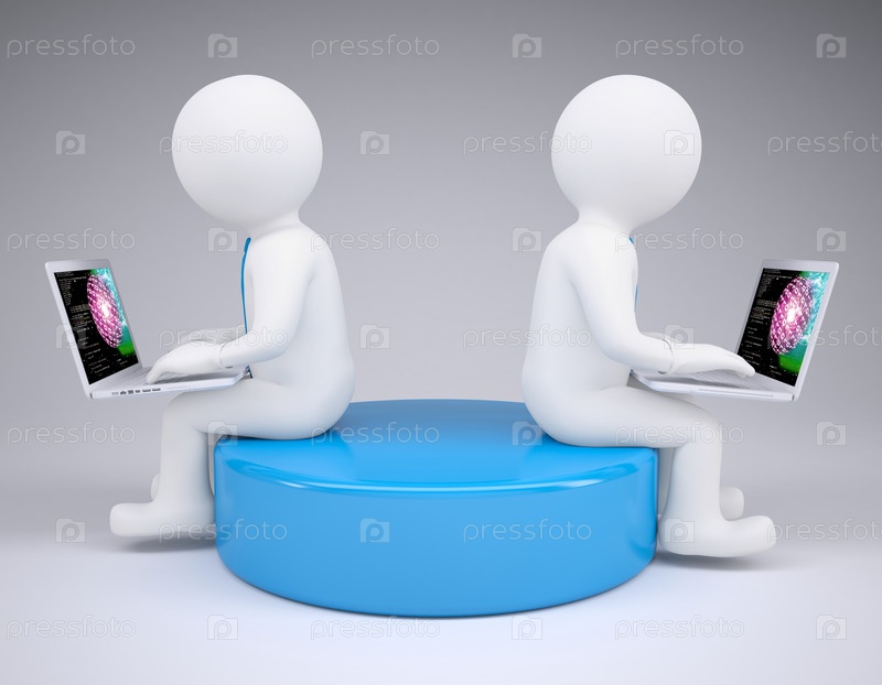 Два белых 3D человека с ноутбуками