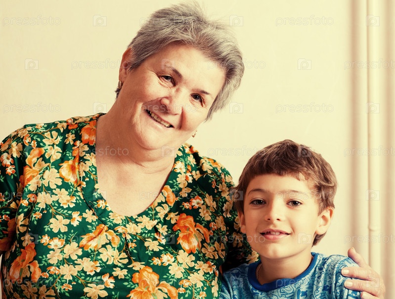 Бабушка и внук в помещении