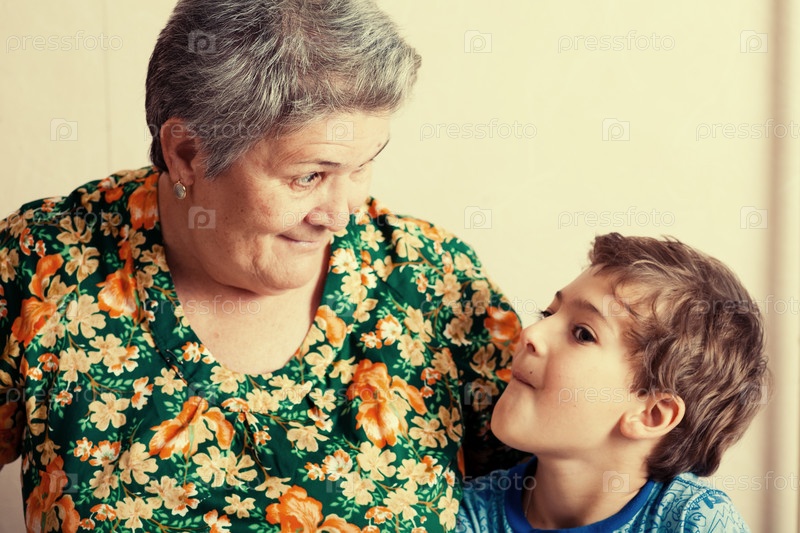 Бабушка и внук в помещении
