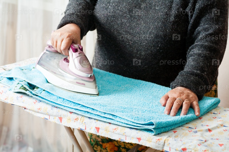 Женщина глажит белье