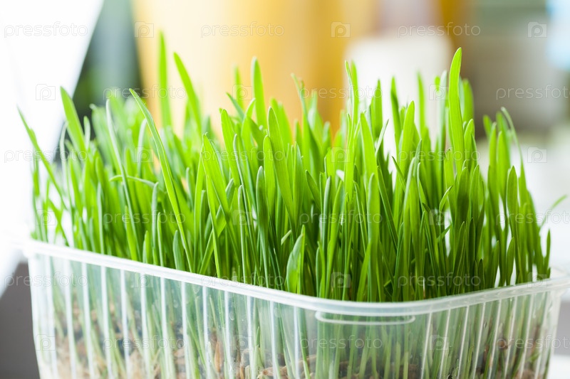 Свежая трава в помещении в контейнере