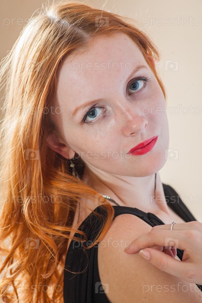Рыжая женщина в студии на белом фоне
